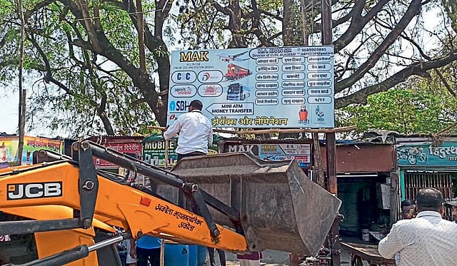 मनपा आयुक्त कविता व्दिवेदी यांच्या आदेशान्वये अकोला महानगरपालिका मुख्य बाजार पेठ येथील सिटी कोतवाली ते बस स्थानक व पुढे टॉवर चौकापर्यंतचे तसेच खुले नाट्य गृह ते फतेह अली चौकापर्यंतचे अनाधिकृत जाहिराती होर्डिंग्जवर मनपा अतिक्रमण विभागाव्दारे निष्कासनाची कारवाई करण्यात आली. ही कारवाई सहा.आयुक्त जगदीश देशमुख यांच्या मार्गदर्शनात झाली. कारवाईत अतिक्रमण विभागाचे प्रवीण मिश्रा, चंद्रशेखर इंगळे, बाजार विभागाचे गौरव श्रीवास यांचेसह मनपा अतिक्रमण विभागातील कर्मचाऱ्यांचा समावेश होता.