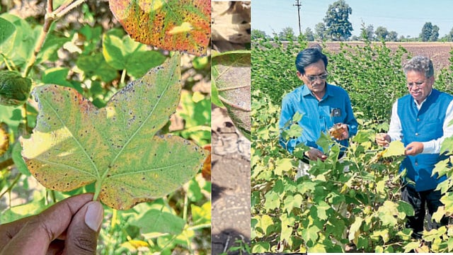 मागील महिन्यामध्ये जोरदार परतीच्या पावसानंतर आता कपाशीच्या पानांचा रंग तांबडा दिसून येत असून, ती पाने सुकून पानगळ होत आहे. सप्टेंबर आणि ऑक्टोबरमध्ये झालेल्या पावसाने खोलगट तसेच पाणी धरून घेणाऱ्या जमिनीवरील कपाशीची वाढ खुंटली होती. पाण्याचा योग्य निचरा झाल्यानंतर स्थिती सुधारत असताना अचानक कपाशीची पाने पिवळी पडून हळूहळू पानांचा रंग तांबडा होत आहे. पाने सुकून गळून पडत आहेत. काही ठिकाणी पानाचा कोकडा होत असल्याने त्याचा परिणाम खोडावर होऊन मालधारणा कमी होत आहे. याबाबत कापूस उत्पादकांमध्ये चिंतेचे वातावरण निर्माण झाले असून, विविध ठिकाणांहून कृषी विभागाकडे तशा तक्रारी नोंदविण्यात आल्या. त्यामुळे ‘डॉ.पंदेकृवि’च्या विविध चमुंनी अकोला, बुलडाणा व वाशीम जिल्ह्यात वेगवेगळ्या ठिकाणी भेट देऊन पाहणी केली व हा ‘दहिया’ रोग असल्याचे स्पष्ट केले आहे.