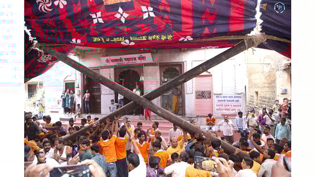 देऊळगाव राजा (जि. बुलडाणा) - विदर्भ मराठवाड्यातील लाखो भाविकांसाठी आराध्य दैवत असलेल्या येथील प्रती तिरुपती श्री बालाजी महाराज यांचा लाटा मंडप उत्सव ३८० वर्षाच्या इतिहासात प्रथमच खंडित झाला होता. यंदा प्रशासनाने दिलेल्या परवानगी नुसार हा उत्सव एक वर्षाच्या खंडानंतर आज (ता. १३) प्रशासनाने दिलेल्या सूचनेचे पालन करून गोविंदा गोविंदा चा सौम्य गजर करीत मोठ्या भक्तिभावाने लाटा मंडप उभारण्यात आला.