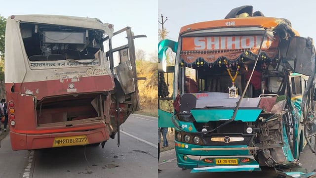 अहमदपूर ते बुलडाणा बस क्रमांक एमएच २० बीएल २३७७ ही मेहकरकडे येत होती. दरम्यान, नांद्रा धांडे फाट्याजवळ पाठीमागून भरधाव येणाऱ्या खासगी बस क्रमांक एआर २०-९२०० ने एसटी बसला जोरदार धडक दिली.