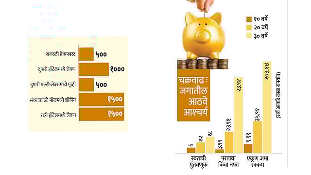 या रकमेतून तुम्ही नव्या घराचे डाऊन पेमेंट, मुला-मुलींचे शिक्षण-लग्न अथवा स्वत-च्या निवृत्तीचे नियोजन करू शकता. दीर्घ मुदतीत स्वत- जमवलेल्या रकमेच्या किती तरी पटीत परतावा मिळतो तो चक्रवाढीमुळे व त्यामुळेच अल्बर्ट आइनस्टाइन यांनी चक्रवाढीला जगातील "आठवे आश्चर्य' म्हटले आहे.