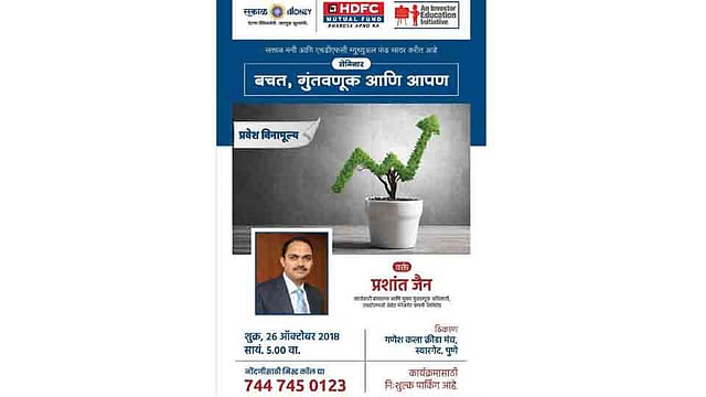 बदलत्या काळाची नेमकी हीच गरज ओळखून, सर्वसामान्य गुंतवणूकदारांच्या आर्थिक समृद्धीसाठी एक चांगला गुंतवणूक प्रकार प्रभावीपणे सादर करण्याचे ‘सकाळ मनी’ने ठरविले आहे. याचे पहिले पाऊल म्हणून (www.sakalmoney.com) या नव्या वेबसाइटच्या माध्यमातून प्रत्येकाच्या गरजेनुरूप गुंतवणुकीचे नियोजन करून प्रत्यक्ष म्युच्युअल फंडात गुंतवणुकीची सुविधा उपलब्ध करून देण्यात आली आहे. या उपक्रमाचे पुढील पाऊल म्हणून म्युच्युअल फंडातील गुंतवणुकीसंदर्भात थेट नागरिकांशी संवाद साधण्यासाठी ‘सकाळ मनी’ने जनजागृतीपर सेमिनार घेण्यास सुरवात केली आहे. आता एचडीएफसी म्युच्युअल फंडाच्या सहकार्याने आज ( २६ ऑक्टोबर) पुण्यात, तर कोल्हापूर व नाशिकमध्ये २ नोव्हेंबरला खास सेमिनारचे आयोजन केले जात आहे.