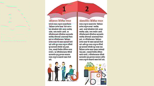 मागील लेखात ‘क्रिटिकल इलनेस केअर इन्शुरन्स’ची माहिती घेतली. ही पॉलिसी आपण लाइफ; तसेच जनरल इन्शुरन्स या दोन्ही कंपन्यांकडून घेऊ शकतो. लाइफ इन्शुरन्स कंपनीकडून आयुर्विमा पॉलिसीसोबत ‘रायडर’च्या स्वरूपात ही पॉलिसी घेता येते.