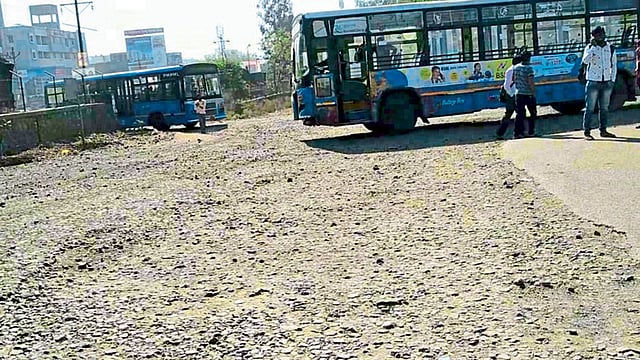भेकराईनगर : भेकराईनगर बसडेपोतील रस्त्याची दुरवस्था झालेली आहे. सुरवातीलाच रस्ता बनविताना अर्धवट रस्ता बनविला आहे. अर्धा रस्ता डांबरी आहे तर अर्धा दगडी रस्ता आहे. सासवड मार्गे डेपो येणाऱ्या बस मार्गाची दुरवस्था झाली आहे. नेमकी रोजच्या बस जेथुन सुटतात आणि दिवसभर बस ये-जा करतात तोच रस्ता कच्चा आहे. त्यामुळे धोकादायक पध्दतीने बसची वाहतूक सुरु असते. तसेच या कच्चा रस्त्यामुळे बस पंक्चर होण्याची शक्यता असते. पावसाळ्यात तर चिखर आणि मातीमुळे रस्ता जास्त खराब होतो. तरी हा बसमार्ग दुरुस्थ करावा अशी प्रशासनास विंनती