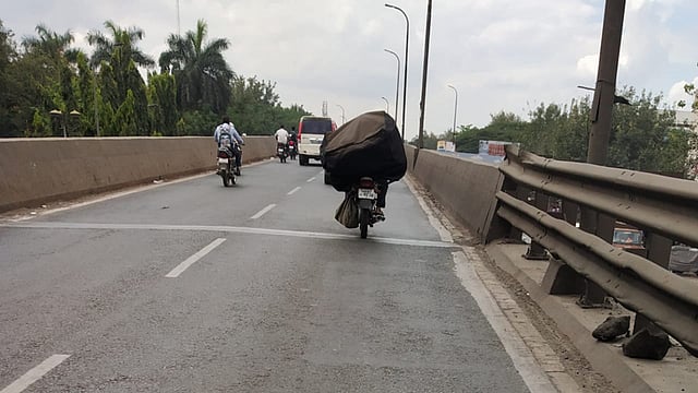 पुणे : हडपसर परिसरात एक दुचाकीचालक क्षमतेपेक्षा जास्त सामान घेवून प्रवास करत आहे. हा भार अत्यंत विचित्र प्रकारे दुचाकीवर घेतला आहे. आपले आयुष्य धोक्यात टाकून असा प्रवास करण्याची काय गरज? कधी येणार अशा लोकांना शहाणपण?