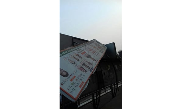 हडपसर : सोलापुर रस्त्यावर आकाशवाणी समोरच्या बस स्टॉपवरील फलक धोकादायक स्थितीत आहे. तो केव्ही खाली कोसळून अपघाताची दाट शक्यता आहे. हा फलक अनधिकृतरित्या लावला कसा? दुर्घटना झाल्याशिवाय प्रशासनास जाग येणार नाही का? महापालिकेने तातडीने याकडे लक्ष द्यावे.