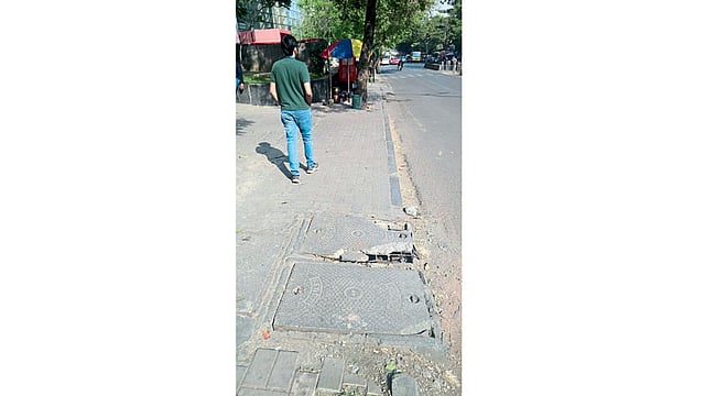 औंध : येथील यशवंत भाले चौकाकडे जाणाऱ्या पदपथावर गाडगीळ ज्वेलर्ससमोर चेंबरची दुरवस्था झाली आहे. चेंबरच्या झाकणावरील सिमेंट निघाल्याने लोखंडी सळया उघड्या पडल्या आहेत. वर्दळीच्या या पदपथावर या धोकादायक चेंबरमुळे अपघाताची शक्यता आहे. आधीच अरुंद असणाऱ्या या पदपथावर यामुळे अडथळा निर्माण झाला आहे. चेंबर दुरुस्तीबाबत पालिका पुढाकार घेईल काय?