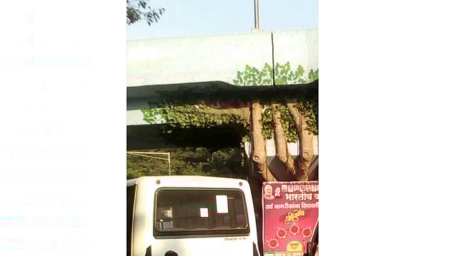 हडपसर : चंद्रमौळीश्वर मंदिरासमोर काही महिन्यांपूर्वीच उड्डाण पुलाखाली वटवृक्षाची अतिशय छान कलाकृती साकारण्यात आली आहे. नावीन्यपूर्ण अशीही कलाकृती सर्वांचे लक्ष वेधून घेते. काही दिवसांपूर्वी त्याचे उद्घाटनही झाले. अशा सुंदर कलाकृतीसमोर फलक लावल्यामुळे त्याची शोभा कमी झाली आहे. भाजपद्वारे दिवाळीनिमित्त शुभेच्छा देणारा फलक येथे लावला आहे. तरी हा फलक तातडीने हटवावा. प्रशासनाने अशा कलाकृतींसाठी खर्च केलेला पैसा, श्रम असा वाया घालवू नये.