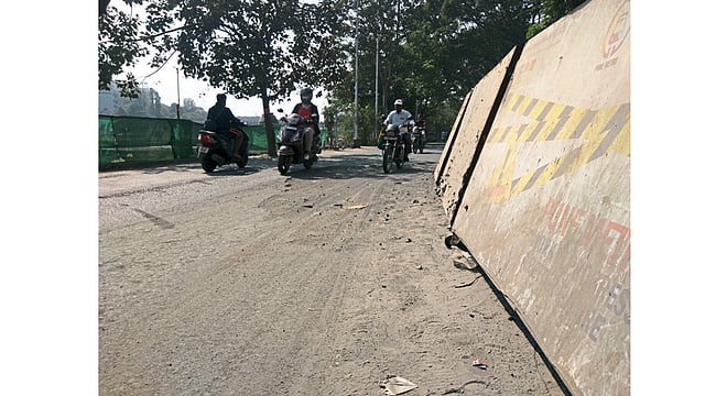 पुणे : नदीपात्र रस्त्यावर काकासाहेब गाडगीळ पुलाखाली मेट्रोचे काम चालू आहे. आधीच अरूंद झालेल्या रस्त्यात ह्या खड्ड्याची भर पडल्याने वाहतूकीस अडथळा होत आहे. रस्ता अरूंद होण्याबरोबरच खड्ड्यातील वाळूमुळे अपघाताची शक्यता आहे.