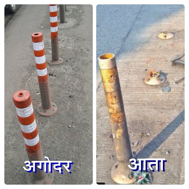 धायरी ः धायरी फाटा येथील रमेश वांजळे उड्डाण पुलाच्या उतारावार अडथळा खांब खराब झाले आहेत. महापालिकेकडे ऑनलाइन तक्रार केली; पण काही उपयोग झालेला नाही. अनेक गंभीर अपघात झाले आहेत. निदान आता तरी दखल घ्यावी.