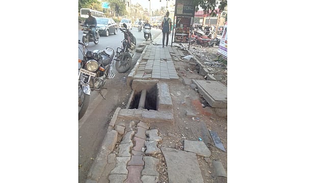 येरवडा : येथील शास्त्रीनगर चौकात 'डॉन बास्को' रस्त्यावरील पोलिस ठाण्यासमोरील चेंबरवर झाकण नाही. त्यामुळे येथे मोठा अपघात होण्याची शक्यता आहे. तरी