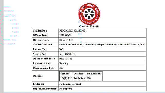 पुणे : पुणे ट्राफिक शाखाद्वारे 26 ऑगस्टला दंड भरण्यासाठी ई-चलन एसएमएस मिळाले. त्यादिवशी रविवार सुट्टीचा दिवस असल्यामुळे माझे वाहन पार्किंगमध्ये