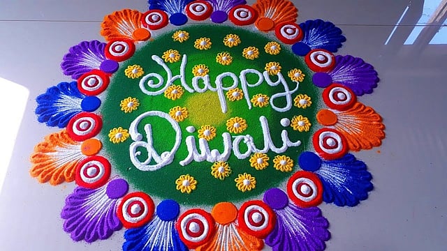 दीपावलीच्या दिवसांमध्ये घरासमोर रांगोळी काढण्याची प्रथा आहे. रांगोळी रंगवली, रंगमाळी, रंगमाळा, रंगावली , रंगोली या नावांने ओळखली जाते, कर्नाटकात रांगोळीला ' रंगोली ' म्हणून संबोधतात. आंध्रप्रदेशात ' मुग्गुलू ' किंवा ' मुग्गु ' या नावाने ओळखतात. तामिळनाडूमध्ये रांगोळीला ' कोलम ' या नावाने रांगोळीला ओळखले जाते. केरळमध्ये रांगोळीला ' पुविडल ' असे म्हणतात. गुजरातमध्ये रांगोळीला ' साथिमा ' म्हणतात. सौराष्ट्रात रांगोळीला ' सथ्या ' म्हणतात. राजस्थानमध्ये रांगोळीला ' मांडणा ' म्हणतात. बंगालमध्ये रांगोळी ' अल्पना ' या नावाने ओळखली जाते. बिहारमध्ये ' अलिपना ' , उत्तर प्रदेशात ' सोनराखना ' आणि ओरिसामध्ये रांगोळी ' झुंटी' किंवा ' ओसा ' या नावाने ओळखली जाते.