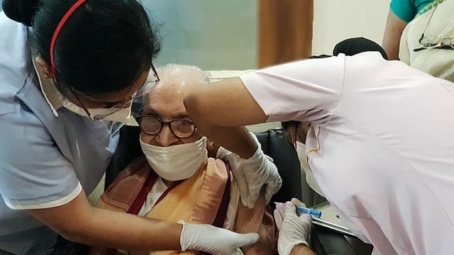 बेंगळुरु- भारतात लसीकरणाच्या मोहिमेने गती घेतली आहे. तसेच देशात नवे विक्रम बनताना दिसत आहे. मंगळवारी बेंगळुरुच्या 103 वर्षाच्या कमलेश्वरी यांनी कोरोनावरील लशीचा डोस घेतला आहे. आतापर्यंत झालेल्या लसीकरणानुसार, त्या कोरोनावरील लस घेणाऱ्या देशातील सर्वाधिक वयाच्या महिला ठरल्या आहेत. बेंगळुरुच्या अपोलो हॉस्पिटलच्या हवाल्याने एएनआयच्या रिपोर्टनुसार, उत्तर प्रदेशच्या नोएडामध्येही 103 वर्षे वय झालेल्या एका व्यक्तीला कोरोनावरील लशीचा पहिला डोस देण्यात आला आहे. नोएडाचे महाबीर प्रसाद माहेश्वरी परिवारातील सात वरिष्ठ नागरिकांनी कोरोनावरील लस घेतली आहे.