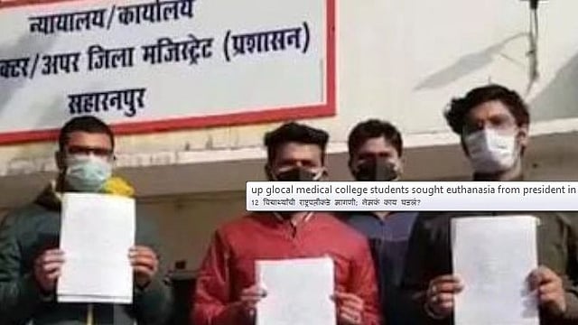 मेडिकल कॉलेजच्या (Medical Collage) विद्यार्थ्यांनी मंगळवारी जिल्हाधिकारी कार्यालयात जाऊन नगर दंडाधिकाऱ्यांना निवेदन दिले, त्यात ग्लोकल मेडिकल कॉलेजच्या विद्यार्थ्यांनी 2016 मध्ये प्रवेश घेतल्याचे सांगण्यात आले आहे. आम्ही तीन-चार वर्षे सातत्याने एमबीबीएसचा अभ्यास सुरू ठेवल्याचे विद्यार्थ्यांचे म्हणणे असून, ग्लोकल मेडिकल कॉलेजमधील प्रत्येक विद्यार्थ्याचे 30 ते 35 लाख रुपये खर्च झाले असून, यापुढे कोणत्याही प्रकरचा खर्च करण्याची मनस्थिती नसल्याचे विद्यार्थ्यांनी सांगितले आहे. त्यामुळे या विद्यार्थ्यांनी राष्ट्रपतींना निवेदन देत इच्छामरणाची मागणी केली आहे.