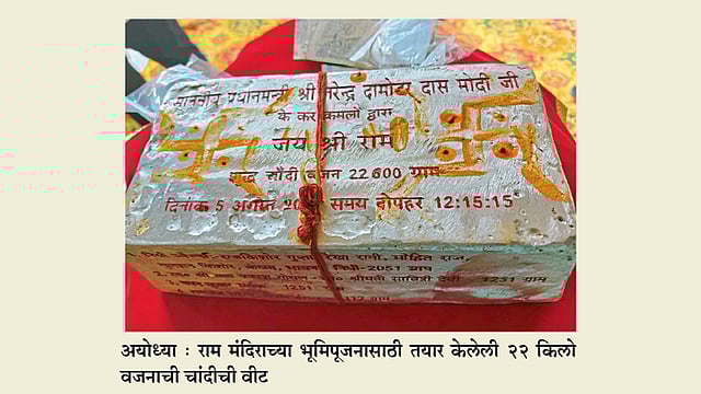 अयोध्या - राम मंदिराच्या भूमिपूजनाची जय्यत तयारी अयोध्येत सुरू आहे. यासाठी २२. ६ किलो वजनाची शुद्ध चांदीची पहिली वीट तयार झाली आहे. पंतप्रधान नरेंद्र मोदी या कार्यक्रमाला येणार असल्याने सर्व व्यवस्था चोख ठेवण्यासाठी उत्तर प्रदेश प्रशासनाचे वरिष्ठ अधिकारी अयोध्येत तळ ठोकून आहेत.