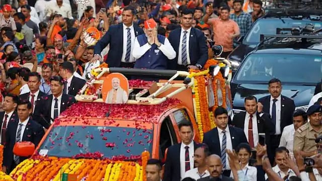 हा रोड शो भाजपचा या निवडणुकीतील सर्वात मोठा कार्यक्रम ठरला आहे. यावेळी हजारो लोक पक्षाचे झेंडे फडकवत ढोलताशांसह पंचप्रधान मोदींचं स्वागत करत होते. यावेळी पंतप्रधान मोदी देखील एसयूव्हीमध्ये उभे राहून रस्त्यावरील गर्दीला अभिवादन करत होते.