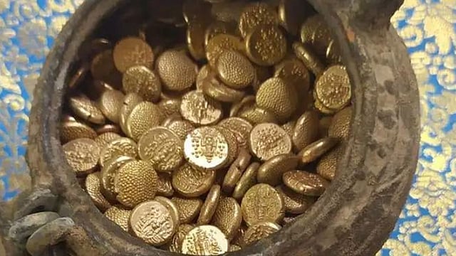 एएनआयने दिलेल्या वृत्तानुसार, तिरुचिरापल्ली जिल्ह्यातील थिरुवनैकवल गावात जाम्बुकेश्वरर मंदिरासाठी खोदकाम सुरु असताना सोन्याची नाणी भरलेला हंडा सापडला. या हंड्यात तब्बल 505 सोन्याची नाणे आहेत. यांचे वजन 1 किलो 716 ग्रॅम इतके आहे. या सोन्याच्या हंड्याबाबत चर्चा झाल्यानंतर गावकऱ्यांनी ही नाणी पोलिसांच्या स्वाधीन केली आहेत.
