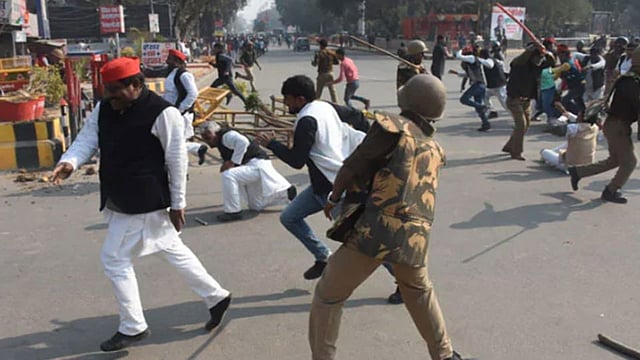 लखनौ : अलाहाबाद विद्यापीठाच्या एका कार्यक्रमासाठी जाताना लखनौ विमानतळावर उत्तर प्रदेशचे माजी मुख्यमंत्री आणि समाजवादी पक्षाचे अध्यक्ष अखिलेश यादव यांना रोखल्याचा प्रकार उघडकीस आल्यानंतर उत्तर प्रदेशच्या अनेक भागांत समाजवादी पक्षाच्या कार्यकर्त्यांनी रास्ता रोको, चक्काजाम आंदोलन केले. यावेळी सपच्या कार्यकर्त्यांवर लाठीचार्ज करण्यात आला.