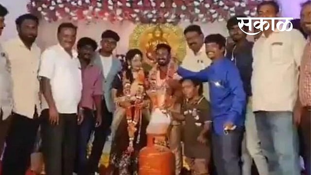 व्हिडिओमध्ये लग्नाला आलेले पाहुणे मंडळी नवरा-नवरीला भेटवस्तू देताना दिसत आहेत. यामध्ये काही मित्रमंडळींनी भेटवस्तू म्हणून आपल्यासोबत पेट्रोलचा कॅन, गॅस सिलेंडर आणि काद्यांचा हार आणला होता. सध्याच्या घडीला अमुल्य असलेलं ही भेट या नवदाम्पत्यानं स्विकारली यावेळी भेट देणारे मित्रमंडळी फोटो काढण्यासाठी पोझ देताना दिसत आहेत. 45 सेकंदाची हा व्हिडिओ सोशल मीडियावर व्हायरल झाला असून 2200 लोकांनी तो पाहिला आहे.