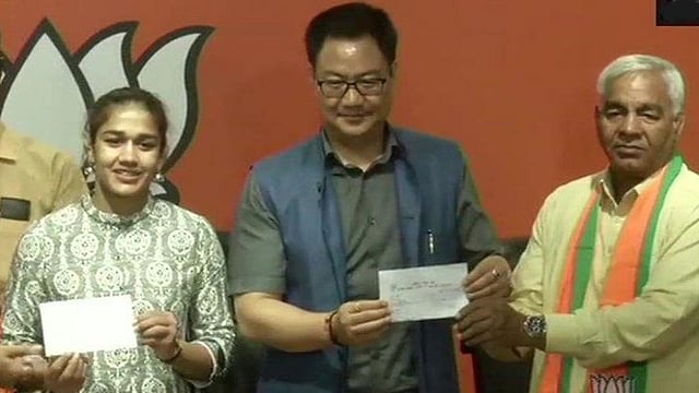 बबिता व महावीर फोगट यांनी दिल्लीतील भाजप मुख्यालयात भाजपमध्ये प्रवेश केला तेव्हा केंद्रीय क्रीडामंत्री किरण रिजीजू यांनी त्यांचे स्वागत केले. त्यापूर्वी दोघांनीही भाजप कार्यकारी अध्यक्ष जे. पी. नड्डा यांची भेट घेतली. महावीर फोगट यांनी हरियानाच्या ग्रामीण भागात आपल्या गीता व बबिता या मुलींना कुस्तीचे प्रशिक्षण देऊन आंतरराष्ट्रीय कुस्तीक्षेत्रात भारताची मान व शान उंचावली. 2014 मधील ग्लासगो राष्ट्रकुल स्पर्धेत सुवर्णपदक पटकावणाऱ्या बबिताने मागच्या वर्षी गोल्ड कोस्टमध्ये झालेल्या राष्टकुल स्पर्धेतही रौप्यपदकाची कमाई केली. गुरू द्रोणाचार्य पुरस्कार विजेते महावीर फोगट यांच्या आखाडा या आत्मकथनपर पुस्तकावर आमीर खान याने "दंगल' हा चित्रपट बनविला. त्यात त्याने स्वतः महावीर यांची भूमिका साकारली होती. या चित्रपटाने जगभरात अफाट यश मिळवल्यावर महावीर तसेच फोगट भगिनी विशेष प्रसिद्धीच्या झोतात आल्या.