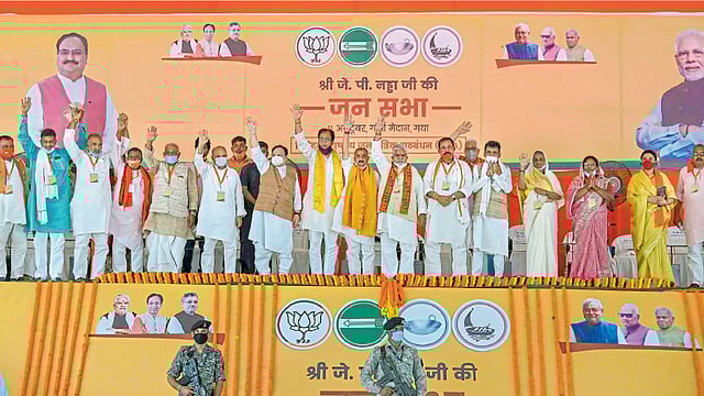 गया - बिहारमध्ये काँग्रेसने धर्म आणि जातीवर आधारीत राजकारण केले, पण पंतप्रधान नरेंद्र मोदी आणि मुख्यमंत्री नितीश कुमार यांनी राजकारणाची दिशा बदलली आणि विविध क्षेत्रांत बरेच काम केले, असे प्रतिपादन भारतीय जनता पक्षाचे राष्ट्रीय अध्यक्ष जे. पी. नड्डा यांनी केले. मोदी है तो मुमकीन है, नितीश है तो प्रदेश आगे बढेगा, अशी घोषणाही त्यांनी दिली.