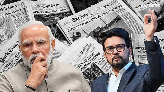 Anurag Thakur Slam New York Times : माहिती आणि प्रसारण मंत्री अनुराग ठाकूर यांनी शुक्रवारी न्यूयॉर्क टाईम्स (NYT) वर भारताबद्दल "खोटे पसरवण्याचा" आरोप केला. काश्मीरमधील प्रेस स्वातंत्र्यावर NYT मध्ये प्रकाशित झालेल्या एका मताचा तुकडा त्यांनी “खोडकरआणि काल्पनिक” म्हणून ट्विट केले आहे.