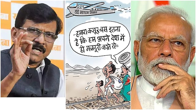 मुंबई : शिवसेनेचे प्रवक्ता आणि खासदार संजय राऊत त्यांच्या ट्विटमुळे चांगलेच चर्चेत असतात. सोशल मीडियातील सक्रियेतून ते अनेकदा मोदी सरकारवर निशाणा साधताना दिसते. मोदी सरकारच्या आणखी एका दुटप्पी भूमिकेवर प्रश्नचिन्ह उपस्थितीत करत संजय राऊत (Sanjay Raut) यांनी एका फोटोच्या माध्यमातून मोदी सरकारवर (Modi Government) निशाणा साधल्याचे पाहायला मिळाले. Shivsena नेते संजय राऊत अधिकृत ट्विटर अकाउंटवरुन एक फोटो शेअर केला आहे. या फोटोमध्ये 'वन्दे मातरम मिशन' अशी ओळ लिहिललेले एक विमान दिसते. या विमानाकडे पाहत रेल्वेच्या पटरीवरुन चालणाऱ्या मजूरांची व्यथा दाखवण्याचा प्रयत्न करण्यात आला आहे.