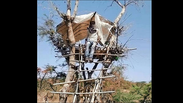 जयपूर (राजस्थान): जगभरात कोरोना व्हायरसने धुमाकूळ घालायला सुरवात केल्यानंतर देशात लॉकडाऊनची घोषणा करण्यात आली. लॉकडाऊनदरम्यान अनेकजण विविध ठिकाणी अडकून पडले होते. सरकारने परवानगी दिल्यानंतर अनेकजण घरी परतू लागले आहेत. पण, गाव त्यांना क्वारंटाईन केले जात आहे. यामुळे एकाने चक्क शेतामधील झाडावर राहण्याचे ठरवले.
