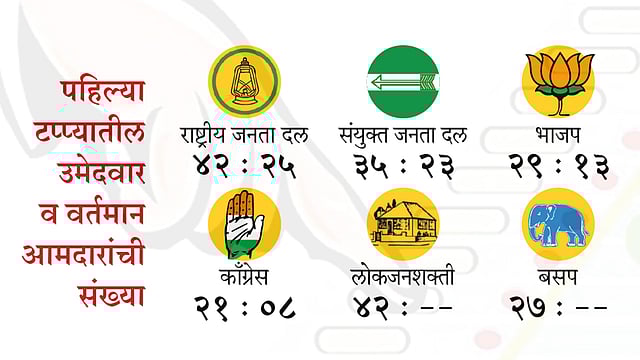 पहिल्या टप्प्यात शिक्षण मंत्री कृष्णनंदन प्रसाद वर्मा हे जहानाबाद मतदारसंघातून उभे आहेत. कृषी मंत्री प्रेम कुमार, ग्रामीण कार्य मंत्री शैलेश कुमार, विज्ञान मंत्री जय कुमारसिंह, महसूल मंत्री रामनारायण मंडल, कामगार मंत्री विजय कुमार सिन्हा, खणीकर्म मंत्री बृजकिशोर बिंद, परिवहन मंत्री संतोष कुमार निराला आदी मंत्री रिंगणात आहे. याशिवाय हिंदुस्तानी अवाम मोर्चा (हम)चे अध्यक्ष व बिहारचे माजी मुख्यमंत्री जीतनराम मांझी हेही रिंगणात आहेत. भारतीय नेमबाज व भाजपची उमेदवार श्रेयसीसिंह, काँग्रेसचे नेते अनंतसिंह, लोकजनशक्तीचे राजेंद्रसिंह, भगवानसिंह कुशवाह हेही मैदानात आहे.