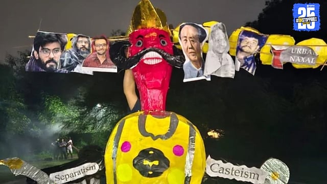 अभाविप नेते प्रवीण कुमार यांनी सांगितले की, डाव्या विचारसरणीच्या संघटना जाणूनबुजून अशांतता निर्माण करत होत्या. खरंतर, जाळण्यात आलेल्या रावणाच्या पुतळ्याच्या १० डोक्यांवर उमर खालिद आणि शर्जील इमाम यांच्यासह दिल्ली दंगलीचा कट रचल्याचा आरोप असलेल्या अनेक व्यक्तींचे फोटो होते.