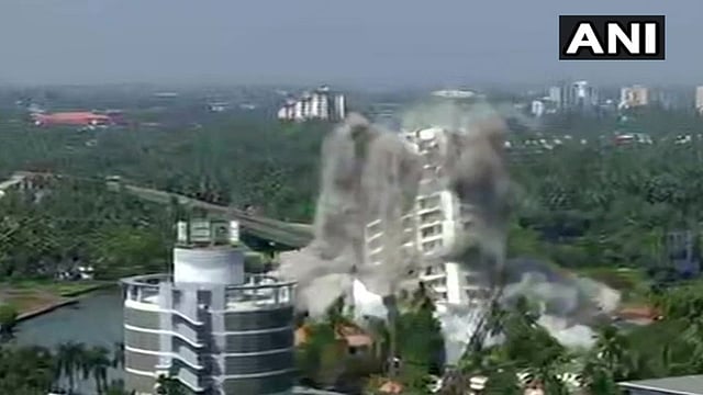 कोची : केरळमधील कोची शहरातील मराडू भागात अवैधरित्या उभारण्यात आलेल्या अलिशान फ्लॅट असलेल्या चार इमारतीपैकी दोन इमारती स्फोटके लावून जमीनदोस्त करण्यात आल्या.