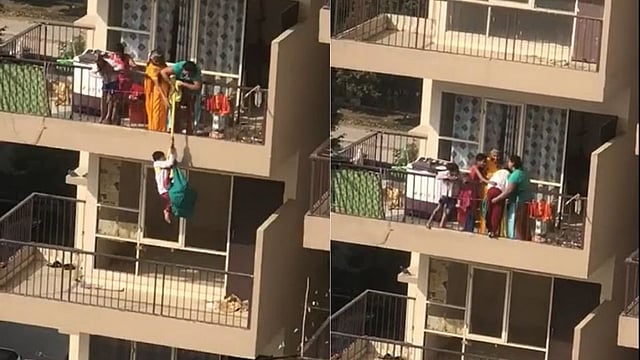 संबंधित घटनेचा व्हिडीओ आता व्हायरल झाला आहे. यामध्ये एक मुलगा बेडशीटला लटकून खालच्या मजल्यावर असणाऱ्या बाल्कनीत जातो. याचं कारण ऐकून तुम्ही हैराण व्हाल. एखादी आई असं का वागू शकते? असा प्रश्न तुम्हाला पडेल. पण नवव्या मजल्यावरील बंद घराच्या बाल्कनीत पडलेली साडी आणण्यासाठी या मुलाला पाठवल्याचं स्पष्ट झालंय. व्हिडीओमध्ये मुलगा बेडशीटच्या सहाय्याने पुन्हा स्वतच्या बाल्कनीत चढत असताना त्याची आई आणि कुटुंबातील इतर स्त्रिया त्याला वर काढताना दिसत आहेत. यासंदर्भात डेली न्यूज हरयाणाने वृत्त दिलं आहे.