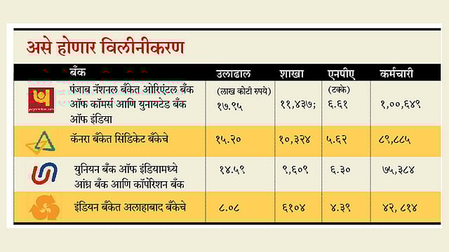 देशात २७ राष्ट्रीयीकृत बॅंका होत्या. आता या विलीनीकरण प्रक्रियेनंतर फक्त १२ प्रमुख राष्ट्रीयीकृत बॅंका राहतील. यानंतर कोणतेही विलीनीकरण केले जाणार नाही. याशिवाय इंडियन ओव्हरसीज बॅंक, युको बॅंक, बॅंक ऑफ महाराष्ट्र आणि पंजाब अँड सिंध बॅंक या चार बॅंकांच्या कामकाजाचा केंद्रबिंदू विभागीय स्वरूपाचा असल्यामुळे त्यांचा राष्ट्रीय बॅंकेचा दर्जा कायम राखताना कामकाजाच्या प्रादेशिक स्वरूपात बदल न करण्याचे सरकारने ठरविले आहे.