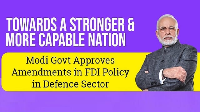 नवी दिल्ली - मोदी सरकारने मोठा निर्णय घेतला असून आता परदेशी कंपन्यांना भारताच्या संरक्षण क्षेत्रात 74 टक्के गुंतवणूक करता येणार आहे. DPIITने गुरुवारी सुरक्षा क्षेत्रात FDI बाबतची माहिती दिली. या माहितीनुसार , राष्ट्रीय सुरक्षेच्या दृष्टीने कोणत्याही परदेशी गुंतवणुकीची पडताळणी करण्याचा आणि रद्द करण्याचा अधिकार DPIIT कडे असतील.
