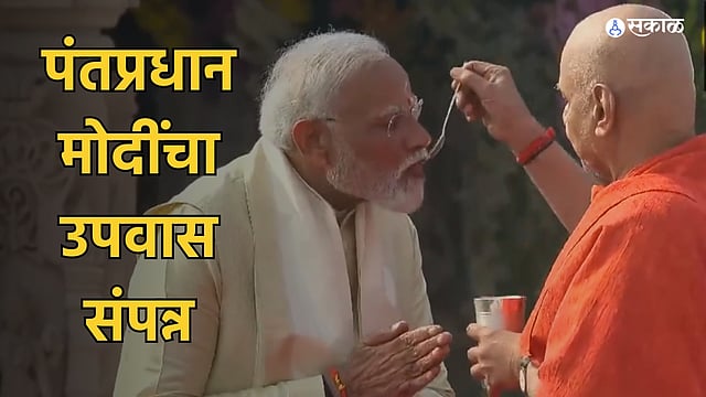 अयोध्येतील प्राणप्रतिष्ठा सोहळा पार पडल्यानंतर आता पंतप्रधान नरेंद्र मोदींचा उपवासही संपन्न झाला आहे. गोविंद देव गिरी महाराजांच्या हस्ते चरणामृत प्राशन करुन मोदींनी हा उपवास सोडला. प्राणप्रतिष्ठा सोहळ्याच्या निमित्ताने मोदींनी 11 दिवसांचा उपवास ठेवला होता.