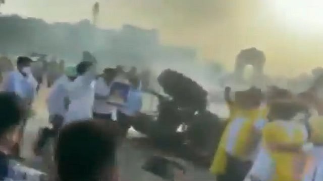 पोलिसांनी सांगितले की, आंदोलकांकडून काँग्रेस जिंदाबाद अशा घोषणा दिल्या जात होत्या. अग्निशमन दलाने ट्रॅक्टरची आग विझवली.