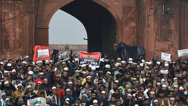 दिल्ली Protest against CAA : जुन्या दिल्लीतील जामा मस्जिद परिसरात आज, शुक्रवारच्या सकाळच्या नमाज पठणानंतर मोठ्या प्रमाणावर जमाव एकत्र आला. महात्मा गांधी, डॉ. बाबासाहेब आंबेडकर यांची पोस्टर्स घेऊन, नागरिकत्व सुधारणा कायदा मागे घेण्याची मागणी जमावाकडून करण्यात येत आहे.