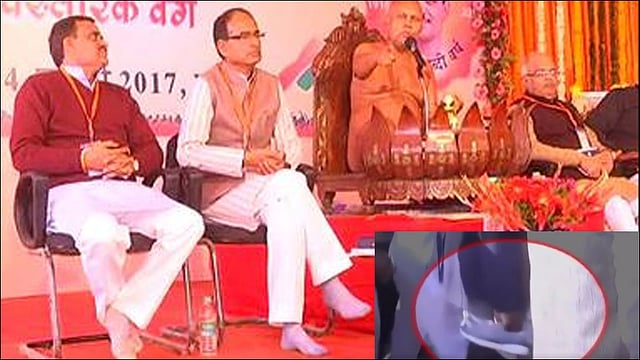 उज्जैन जिल्ह्याचे भाजपाध्यक्ष श्याम बन्सल म्हणाले, चौव्हान कार्यक्रमाला उपस्थित राहण्यापूर्वी शेजारी असलेल्या मंदिरात दर्शनासाठी गेले होते. यावेळी एका कार्यकर्त्याने बूट हातात उचलून घेतला होता.