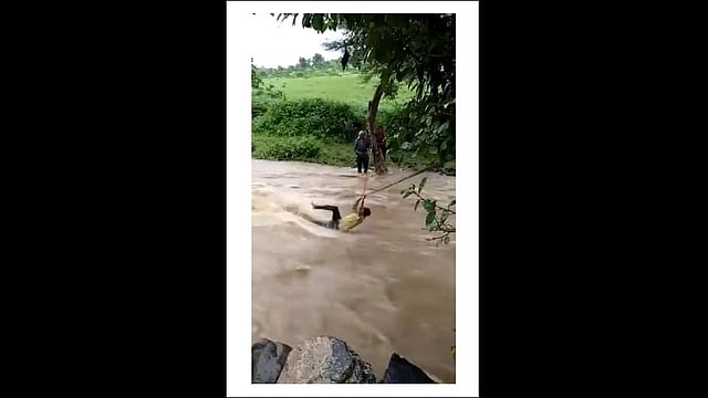 प्रतापगड जिल्ह्यातील पानमोडी गावात एक 25 वर्षीय युवक झाडांना बांधलेल्या दोरीवरून वाहत्या पाण्यात स्टंट करायला गेला. दोरीचा हात सुटला आणि पाण्यात वाहून गेला. सुदैवाने जीव बचावला आहे. पण, हे धाडसी कृत्य जीवावर बेतले असते. व्हायरल झालेल्या व्हिडिओमध्ये युवक दोरीने नदी पार करण्याचा प्रयत्न करत असल्याचे दिसते. मात्र, पाण्याचा प्रवाह खूप असल्यामुळे दोरीही पाण्याबरोबर वाहत होती. या परिस्थितीतही युवक स्टंटबाजी करत नदी पार करण्याचा प्रयत्न करत होता. नदी जवळजवळ पार केली. पण, किनाऱ्याजवळ पोहचताच त्याचा हात सुटला आणि पाण्याबरोबर वेगात वाहून गेला. युवकाला वाहत जाताना पाहून त्याच्या मित्रांनी वाचवण्यासाठी पाण्यात उड्या टाकल्या. युवक पाण्याच्या प्रवाहाबरोबर तब्बल 1 किमी लांब वाहून गेला होता. पुढे सुदैवाने त्याच्या हाताला एका झाडाची फांदी लागली. फांदीला पकडल्यामुळे थोडक्यात जीव वाचला. दरम्यान, संबंधित व्हिडिओ व्हायरल झाल्यानंतर गावकऱ्यांनी युवकांना नदीवर जाण्यास बंदी घातली आहे. शिवाय, नेटिझन्सनी प्रतिक्रियांच्या माध्यमातून टीकाही केली आहे.