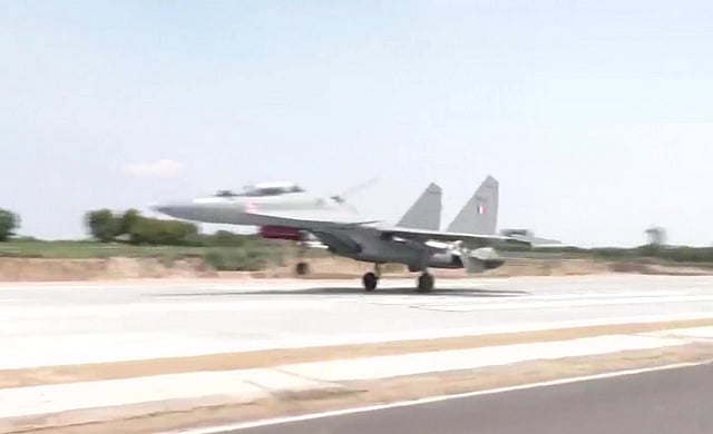 पहिल्यांदाच सुखोई एस यू ३० एमकेआय लढाऊ विमान राष्ट्रीय महामार्गावर उतरवण्यात आले आहे.