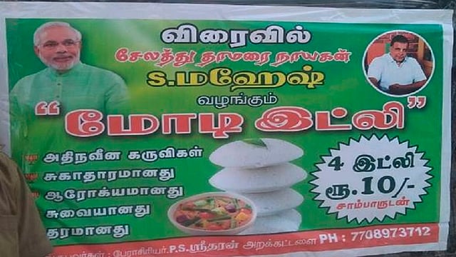 तिरुवनंतपूरम - तामिळनाडुत फक्त एका रुपयात पोट भरावं यासाठी राज्य सरकारकडूनच एक रुपयात इडली देण्याची व्यवस्था आहे. सरकारी अनुदान असलेल्या इडलीची सुरुवात दिवंगत माजी मुख्यमंत्री जयललिता यांनी सुरु केली होती. त्यामुळे या इडलीला अम्मा इडली असंही म्हटलं जातं. दरम्यान, आता या अम्मा इडलीला टक्कर देण्यासाठी भाजपच्या एका पदाधिकाऱ्याने मोदी इडली सुरु केली आहे. ही इडली सालेममधील वेगवेगळ्या ठिकाणी उपलब्ध आहे अशी जाहीरातही करण्यात आली आहे. तामिळनाडु भाजपच्या प्रचार विभागाचे उपाध्यक्ष असलेल्या महेश यांनी रिक्षाच्या पाठिमागेच याची जाहीरात केली आहे. यामध्ये मोदी इडली फक्त दहा रुपयांना मिळत असल्याचं म्हटलं आहे. जाहीरातीमध्ये पंतप्रधान नरेंद्र मोदी आणि महेश यांचा फोटो आहे.