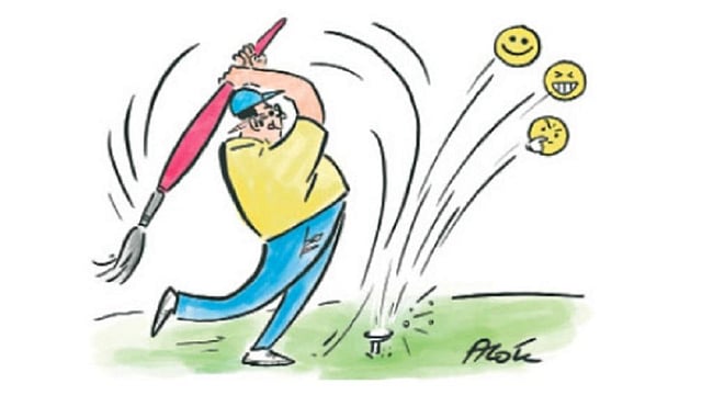 एखाद्याला सहजतेने वठणीवर आणायचं सहजसुंदर सोपं असं हे कार्टूनचं माध्यम आहे. भ्रष्टाचार, जनमानसातली मानसिक घुसमट याचंही मार्मिक दर्शन व्यंग्यचित्र घडवतं. आर. के. लक्ष्मण हे भारतातील प्रख्यात व्यंग्यचित्रकार. त्यांच्या व्यंग्यचित्रातला "कॉमन मॅन' सर्वपरिचित आहे. त्या कॉमन मॅनचं पुण्यातले शिल्पकार विवेक खटावकर यांनी शिल्पात रूपांतर केलं आहे. हा "कॉम नमॅन' पन्नास वर्षांतील देशातल्या राजकीय, सामाजिक आणि सांस्कृतिक घडामोडींचा साक्षीदार आहे.