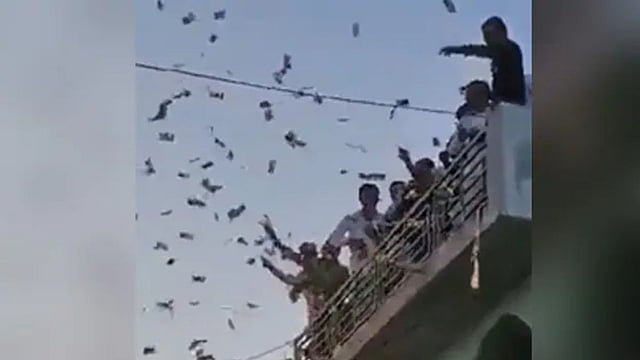 या व्हिडिओमध्ये लोक उडवण्यात आलेल्या नोटा घेण्यासाठी धावताना दिसत आहेत, तर बॅकग्राऊंडमध्ये बॉलिवूड चित्रपट 'जोधा अकबर'मधील 'अझीम-ओ-शान शहेनशाह' हे गाणे वाजत आहे.