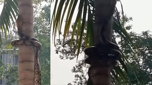 या व्हिडिओमध्ये दिसत आहे की, ''एक भव्य अजगर एका खास पद्धतीने उंच ताडाच्या झाडावर चढत आहे. हे लांबलचक अजगर ताडाच्या झाडाला लपेटून घेत आहे नंतर त्याच्याभोवती साधारणपणे तीनदा स्वतःच्या शरिराने गुंडाळत आहे आणि नंतर डोके वर काढून पुन्हा झाडाला तीन वेटोळे घालून सफाईदारपणे वर चढत आहे. अजगराला ताडाच्या झाडावर असं तंत्रशुद्धपणे चढताना पाहून आपण मंत्रमुग्ध होऊन जातो.''