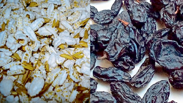 अम्लपित्तामध्ये पोटात मळमळ होत असेल, उलटी होईल असे वाटत असेल तर कोरड्या साळीच्या लाह्या थोड्या थोड्या चावून खाण्याने लगेच बरे वाटते. छाती, पोटात जळजळ होत असेल किंवा जेवणानंतर घशात जळजळत असेल तर मूठभर काळ्या मनुका चावून खाण्याने आराम मिळतो. अम्लपित्ताचा त्रास असणाऱ्या व्यक्तींनी साळीच्या लाह्या आणि काळ्या मनुका कायम जवळ ठेवणे, आणि त्रास होईल असे वाटले की लगेच चावून खाणे हितावह असते. यामुळे पुढच्या समस्या कमी होतात.
