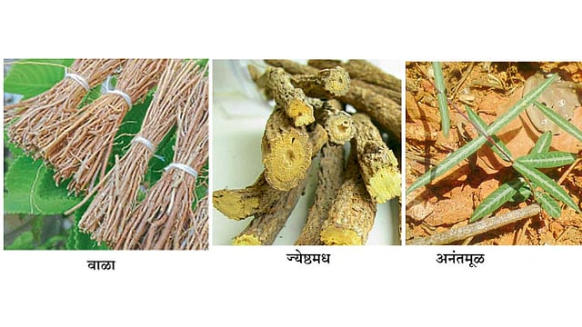 वाळा, ज्येष्ठमध, कुष्ठ आणि अनंतमूळ हे आपल्या शरीरासाठी खूप उपयुक्त आहेत. सुगंधी वाळा आणि नेहमीचा वाळा यांचा लेप शरीराचा दाह, त्वचारोग आणि घाम करणाऱ्या लेपांमध्ये श्रेष्ठ असतो. ज्येष्ठमधाचा छोटा तुकडा चघळल्याने आवाज सुधारतो, कंठ मोकळा होतो. रक्तशुद्धिकर असल्याने ज्येष्ठमधामुळे त्वचा उजळते, तेजस्वी होते.