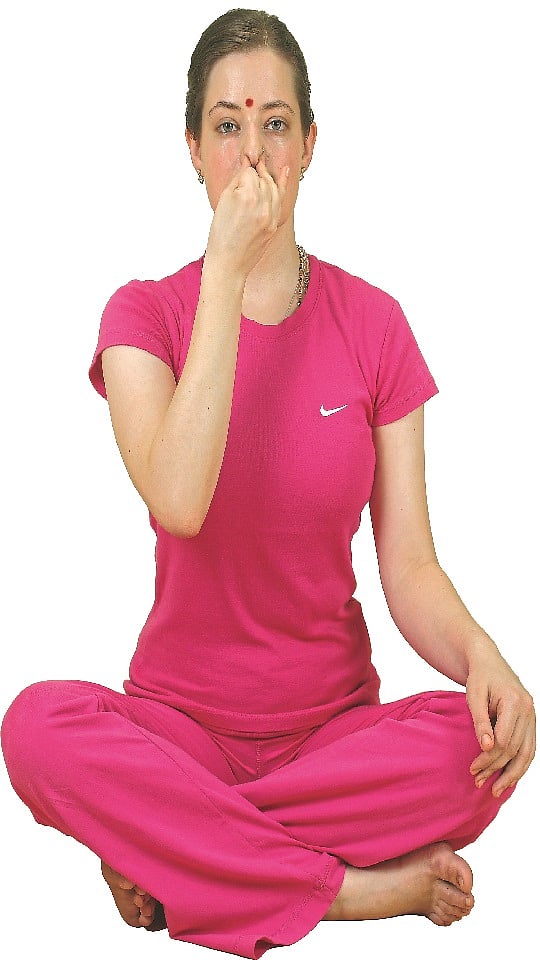 4. पोट आत व वरच्या दिशेला ओढून श्वास धरून ठेवावा. या वेळी लक्ष सहस्राधार चक्राच्या ठिकाणी म्हणजे मस्तकावरील टाळूच्या ठिकाणी केंद्रित करावे. खांदे आखडणार नाहीत याकडेही लक्ष असावे.