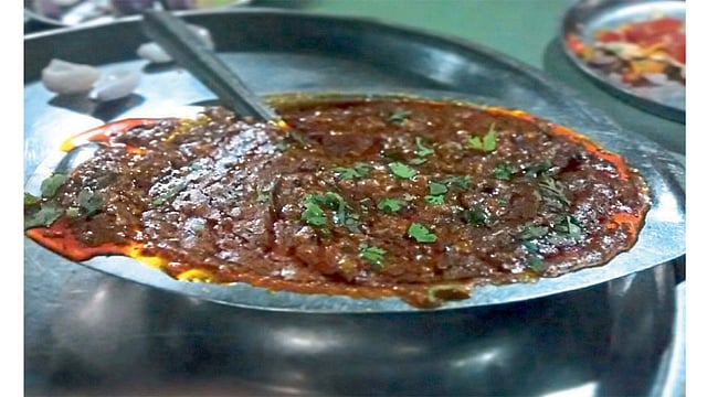 तिखट अर्थातच, आपापल्या चवीनुसार. पण दाण्याचं कूट असल्यामुळं तिखटाचा अंमल थोडा कमी होणार हे समजून हवं त्यापेक्षा थोडं अधिक तिखट टाकलं, तर बेत हमखास जमून येणार म्हणून समजा. सोबत भाकरी असेल तर