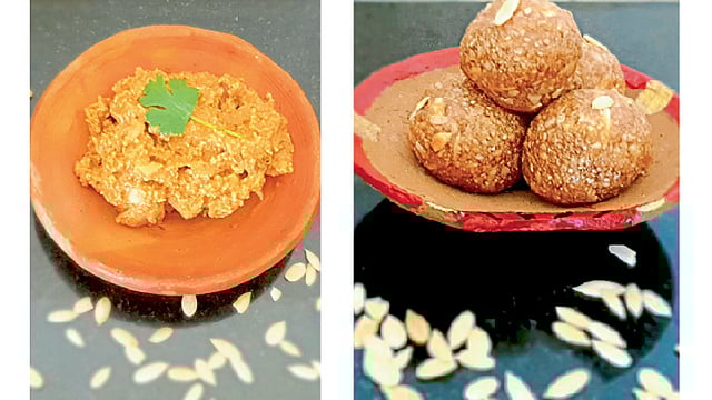 टीप : पारंपरिक रेसिपीमध्ये ओल्या बिया चुलीतील राखेत चोळून त्यांपासून लाडू बनवितात. ओल्या बिया मिळाल्यास पारंपरिक पद्धतीनेही लाडू बनविता येतील.